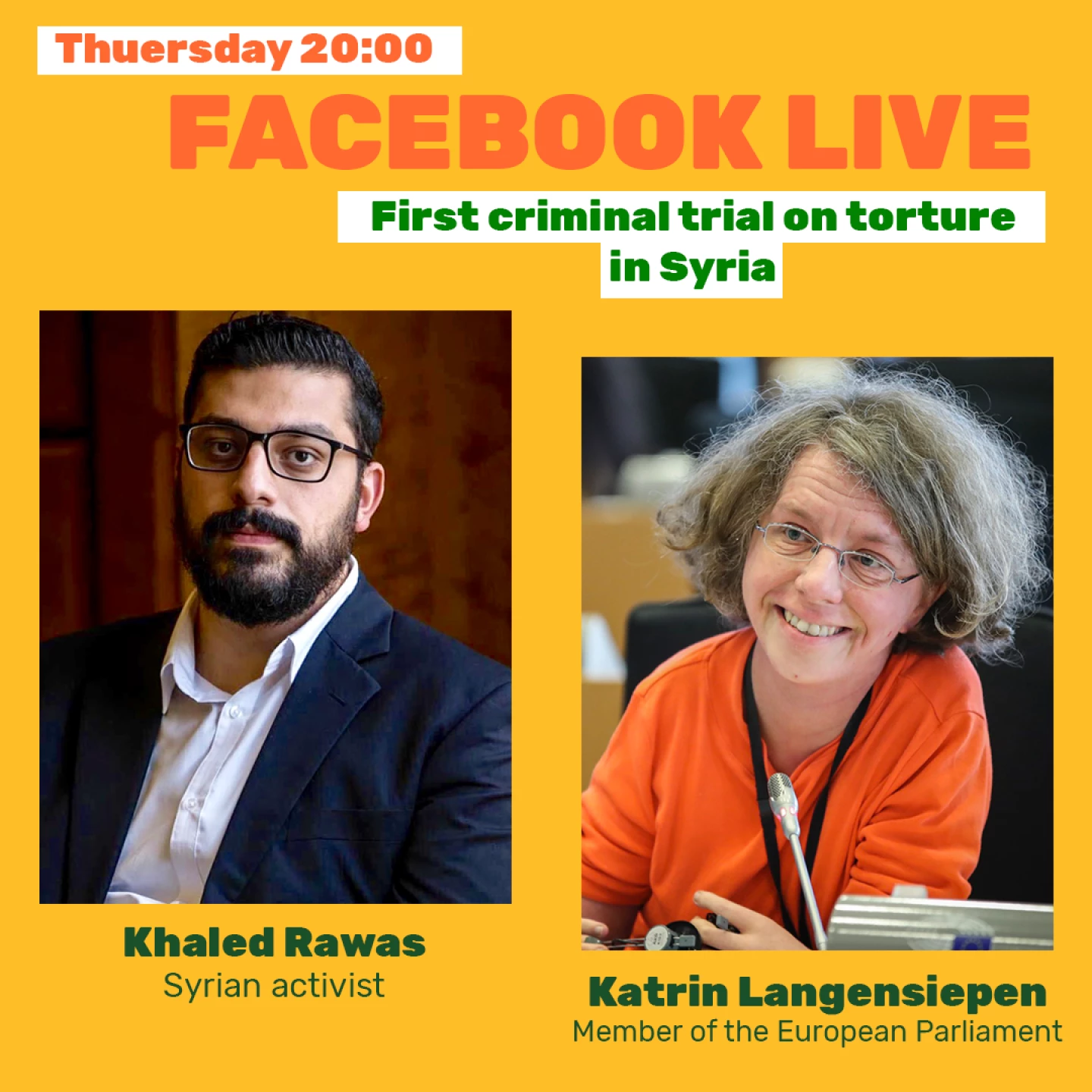 Join our #FacebookLIVE on Thursday 8pm!On that day the world's first #trial for state torture in #Syria will begin in Germany. The accused are Anwar R. and Eyad A. - two former functionaries of the General Intelligence Directorate of Syria's President Bashar al-Assad. The accusation: crimes against humanity, torture, murder and rape.